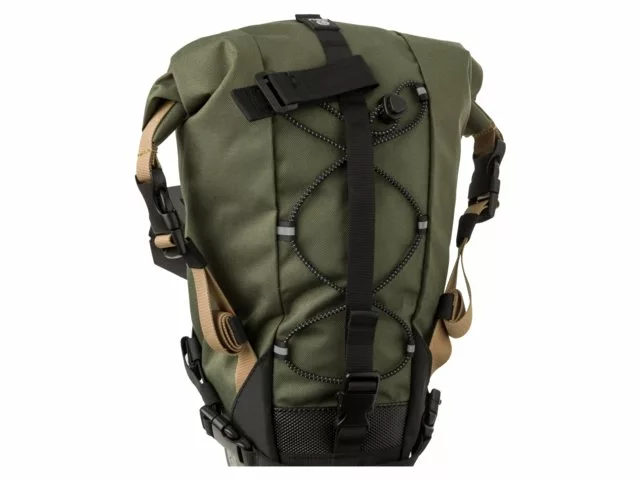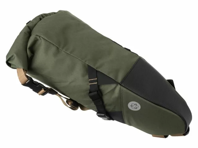 Tasken fastgøres med velcrostropper og har også stropper med quick-release, der gør fastgørelsen nem under sadlen.